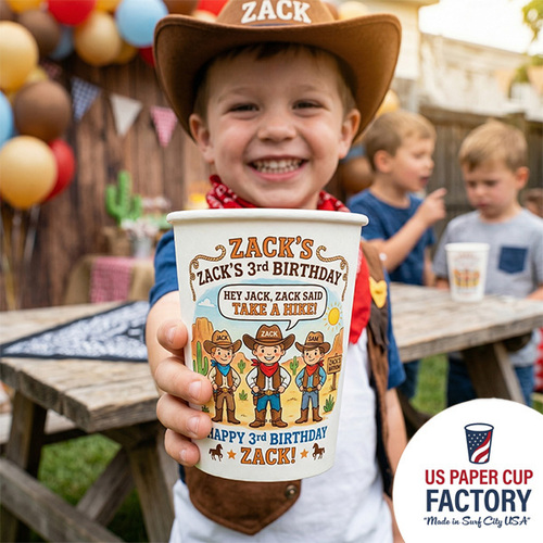 Level up his birthday celebration with our custom-printed Boy/Toddler Birthday cups. From action-packed superhero bashes to adventurous dinosaur or construction themes, these personalized paper cups are the ultimate party addition. Printed in full color on durable, high-quality cardstock, they are sturdy enough for active toddlers and perfect for drinks or party favors. Every order includes free custom design assistance to ensure your cups perfectly match his favorite theme. Make his big day extra special with eco-friendly cups that look great and hold up to all the party fun.